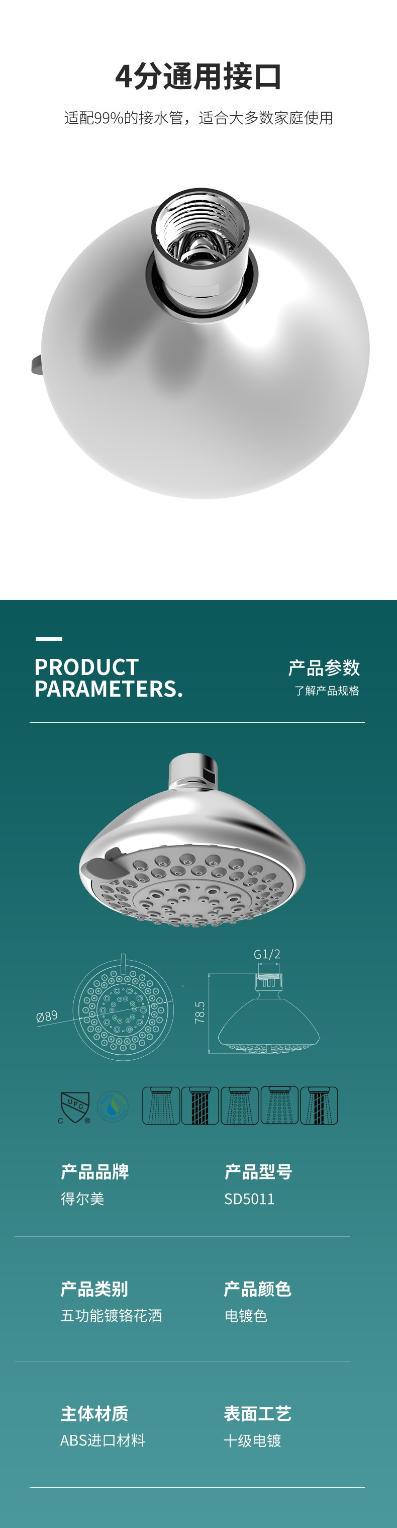 SD5011 5功能蓮蓬頭