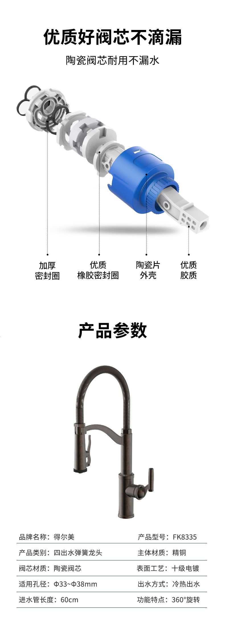 FK8335 廚房彈簧抽拉龍頭