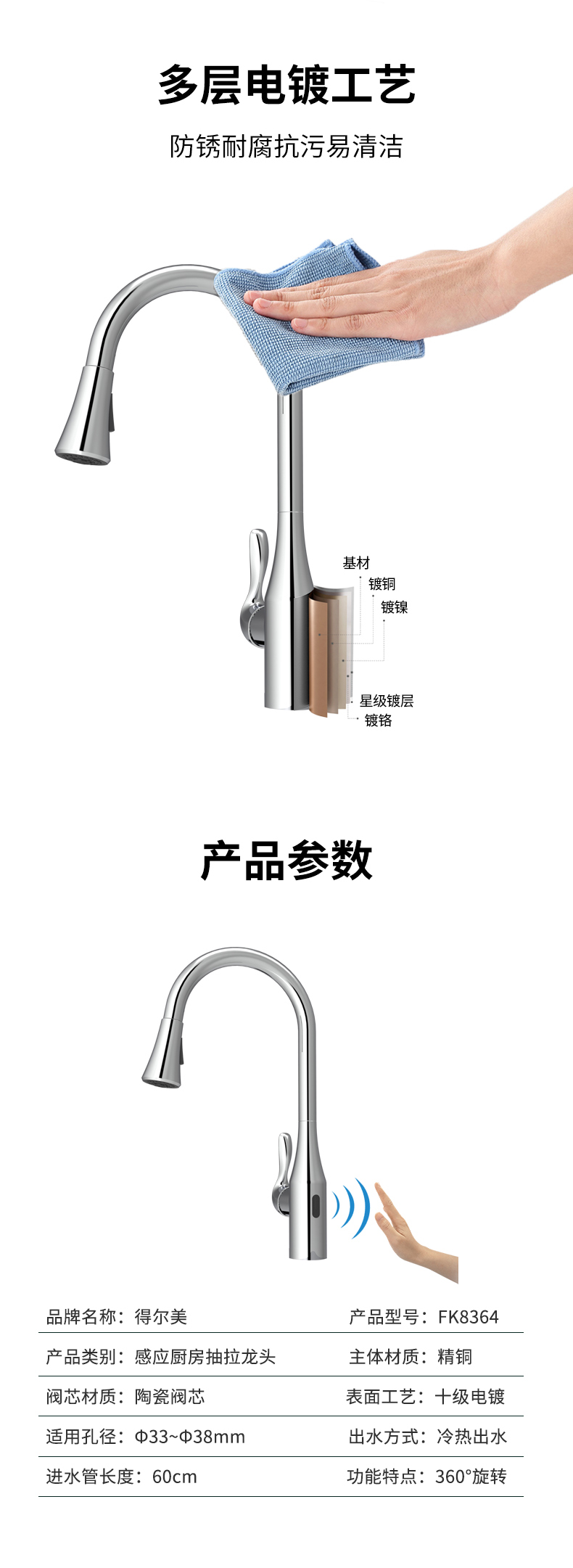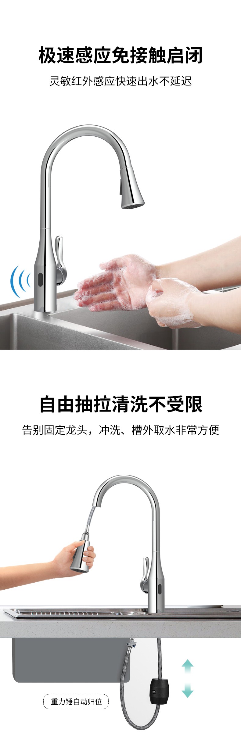 FK8364 感應雙控廚房抽拉龍頭